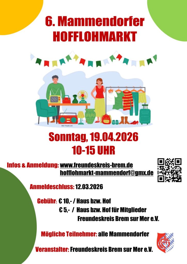 Der nächste (6.) Hofflohmarkt findet am 19.04.2026 von 10:00 h. – 15:00 h. statt